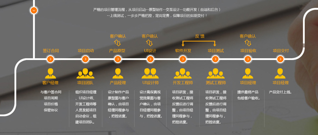強(qiáng)大的設(shè)計(jì)及技術(shù)團(tuán)隊(duì) · 擁有成功的合作經(jīng)驗(yàn) · 標(biāo)準(zhǔn)化作業(yè)體系 · 一對(duì)一百分百服務(wù) · 獨(dú)享的顧問(wèn)式貼身服務(wù)